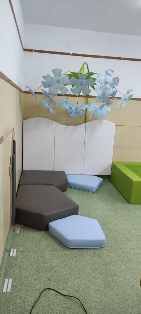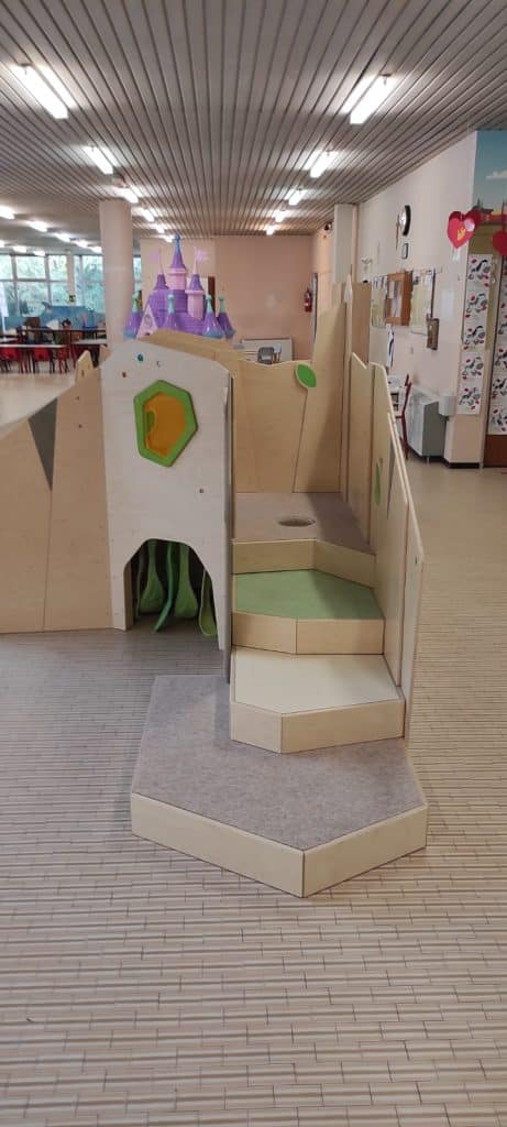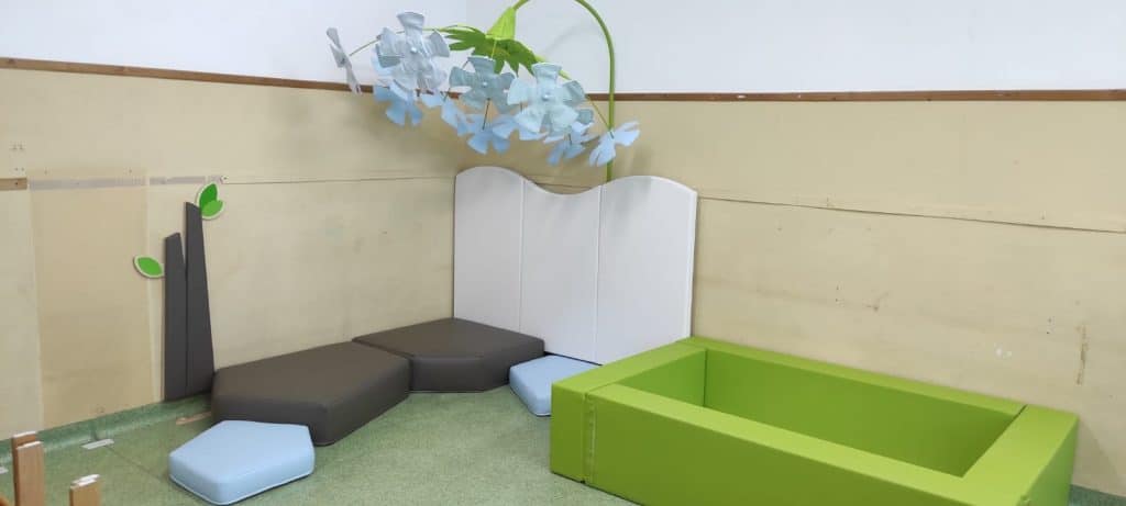 Abbiamo progettato gli elementi della stanza ispirandoci agli aspetti naturali dei paesaggi locali, cercando di riflettere la bellezza che ci circonda. Il risultato è una zona tranquilla che funge da oasi, dove essere bambini diventa un’esperienza semplicemente divertente.